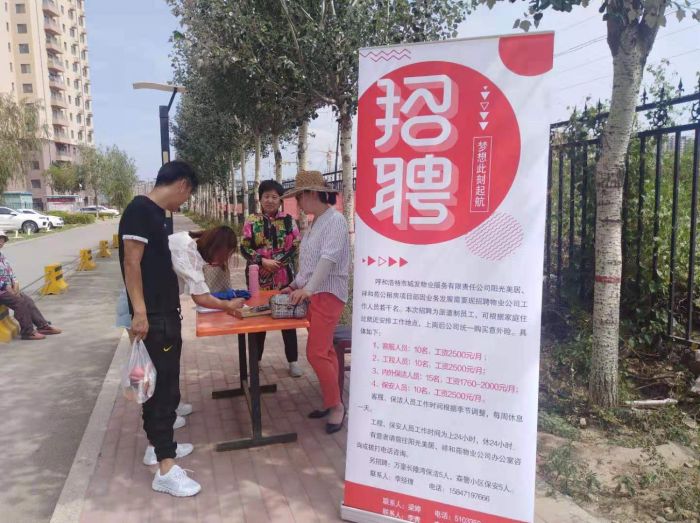 710日、11日、19日,物業公司聯合內蒙古眾信人力資源服務有限責任公司赴市勞動人才市場及在管的陽光美居小區、祥和苑小區,招聘高素質的勞務派遣專業技能人才和一線員工,并建立了人才儲備庫。