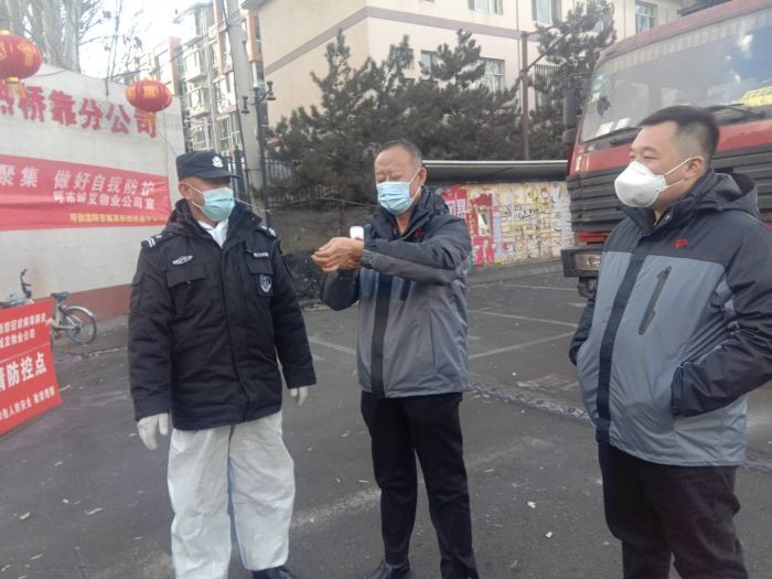 物業(yè)公司黨支部書記娜仁、經(jīng)理史濤等疫情防控領(lǐng)導小組成員還在項目現(xiàn)場參加出入人員登記、測溫、人員勸導疏散等防控工作。