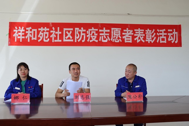 5月15日上午,小黑河鎮祥和苑社區黨支部開展表彰防疫志愿者活動。城發物業公司黨支部書記娜仁應邀參加此次活動。