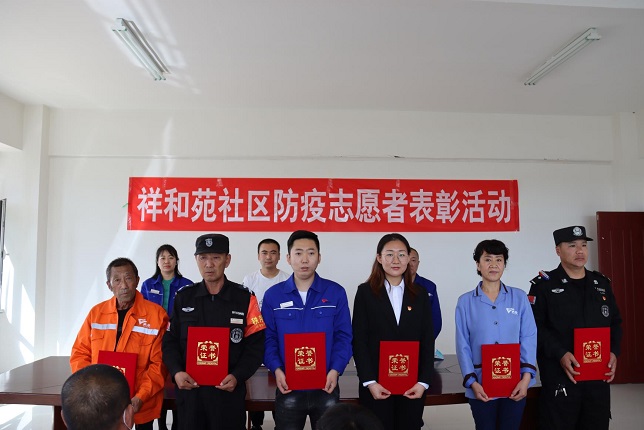 在這次表彰活動中,共授予23名志愿者和物業工作人員榮譽證書,祥和苑公租房項目經理隗公樸接過鮮紅的榮譽證書說:在這次疫情防控工作中,祥和苑社區黨組織和物業公司黨支部對項目處工作人員的關愛,是物業人不斷奮戰的精神動力,有黨旗的地方就有力量,作為一名老黨員,我會牢記使命,不負榮譽,不負職責,帶領祥和苑項目處全體工作人員,積極配合小黑河鎮社區做好各項工作,再接再厲,守護好小區業主的健康和平安。