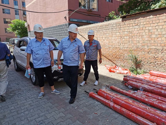 7月7日上午,管網公司副經理任強等一行人對所承建的三合村供熱分公司68號院木器廠平房區接入集中供熱項目、橋靠供熱分公司黨校一號院平房區接入集中供熱項目等施工現場進行了專項檢查。安全質檢處、工程管理處、設備材料處等人員參加了施工現場檢查。
