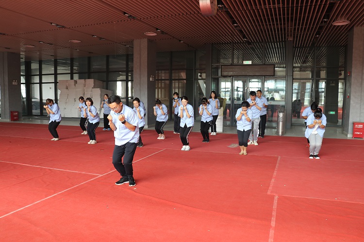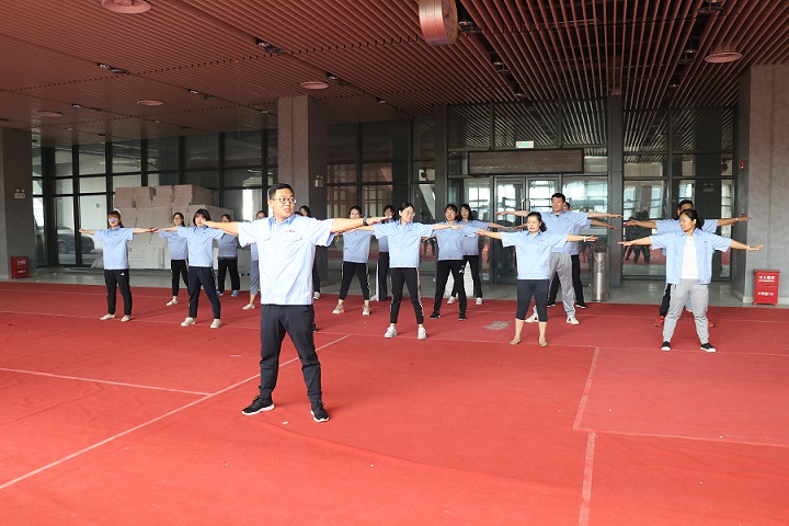 上午10:00第九套廣播體操的音樂準時在一樓大廳響起,領(lǐng)操員王龍帶領(lǐng)全體職工就位,首先整理隊形,接著帶領(lǐng)大家從伸展運動開始在積極昂揚的音樂中聯(lián)系廣播體操,全體員工積極參與,認真練習整個大廳充滿了活力、健康的氛圍,一天的高效工作由此開啟。