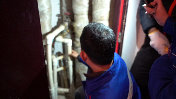 在國土家園小區(qū)宣傳走訪中,當(dāng)用戶打開戶門時(shí),已經(jīng)感到一股熱氣撲面而來。用戶張姐激動地說:只是聽說供熱公司提前供熱,沒想到今天家里就開始熱乎了,打心眼里感謝政府,感謝城發(fā)公司。有一戶家中說是暫時(shí)不熱,工作人員經(jīng)過分析,判斷是入戶過濾網(wǎng)堵了。在現(xiàn)場,及時(shí)組織人員拆解、清洗濾網(wǎng),排除了不熱故障,還講解了戶內(nèi)暖氣設(shè)施的保養(yǎng)常識。還有的用戶,因?yàn)樽≡陧攲樱恢琅艢忾y門和排氣,工作人員一邊講解供熱知識,一邊給用戶排氣,讓溫暖流入用戶家中。
