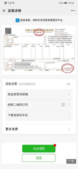 平臺上線后,熱用戶可以關注城發供熱微信公眾號,通過發票查詢模塊輸入客戶名稱、客戶編號和開票年份進行發票查詢,直接獲取發票至微信卡包,或可通過獲取發票端口根據個人需求選擇發送PDF到郵箱、使用二維碼打印、下載PDF到手機任意一種途徑獲取發票。