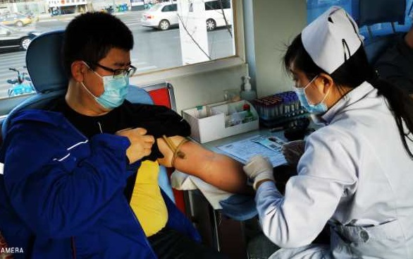 10時整,報名獻血的干部職工陸續(xù)進入采血車,大家首先登記體檢,排隊依次進行獻血。