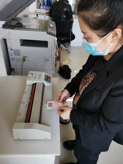城發物業公司精心設計排版,為4個公租房小區制作了2萬多張居民出入證,從126日開始分批次地為4個公租房小區的1.6萬多戶居民辦理出入證,并且為了保證卡片的持久耐用性,在居民提供相片、有效身份證件復印件、詳細住址、聯系方式等個人身份信息后對卡片進行了覆膜塑封處理。考慮到公租房小區人口密度大、喜扎堆、防護意識較薄弱的特點,物業公司公租房小區項目處在開展物業服務工作的同時按時間、分批次,保證所有居民排隊、有序、安全的辦理出入證。