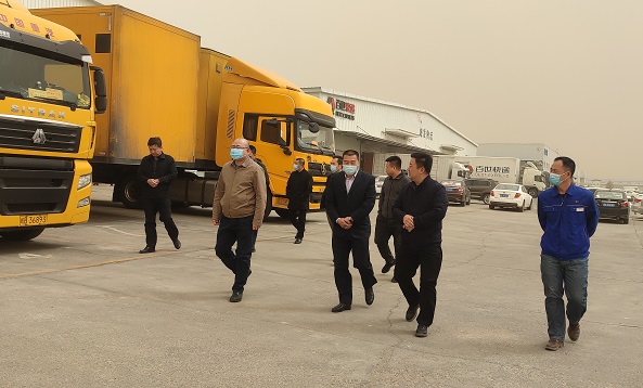 4月15日上午,烏蘭察布市萬益物流園區董事長王登勇、副總經理楊兆天、招商運營部長李玲娟一行赴城發物流公司惱包園區、億陽園區考察調研,城發物流公司黨支部書記楊福平、經理丁雪峰、副經理侯禎接待一行來訪人員。