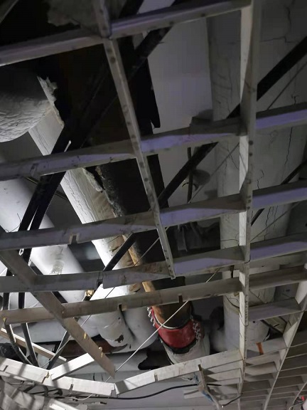 在公寓十五樓勘察現場,任強指出,施工現場供熱管線錯綜復雜,通風難度大,極易觸發消防噴淋頭。任強要求,在該樓層施工一定要確保萬無一失,將可能發生一切安全隱患排查到位,做好相應的防范措施;要在不擾民的前提下進行施工,充分做到既要確保安全文明施工又要確保工程進度。