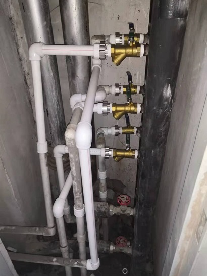 世貿金鉆屬于公寓式建筑,總住戶795戶,供暖面積約7萬多平,分為A、B、C座高層公寓,高中低壓三區,二次網整體改造工程于7月30日開工,施工范圍從A、C區公寓的3層施工至28層,B區公寓3層至8層,每層有10個管道井,合計更換各類型號無縫管約4800米,過濾器1231套,絲扣銅球閥1244個。