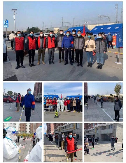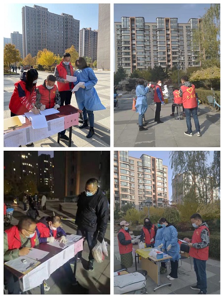 城發物業公司黨支部組建6支防疫小分隊,在黨支部書記娜仁、經理史濤的帶隊下,奔赴在管的惠新苑、康居家園、祥和苑、陽光美居公租房小區,金城小區及森警小區開展核酸檢測志愿服務。