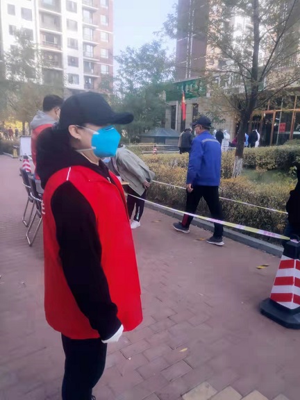 集團宣傳部翟玉卿參加金漢御園小區核酸檢測志愿服務。