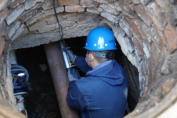 在13號樓進出口閥門附近,檢修人員正在二次管網地溝內進行水力平衡調節工作。橋靠分公司第四運營所副所長賈超介紹:"在2020-2021采暖期供暖結束后,所部便開展冬病夏治、供熱設施維修工作。特別針對老舊小區供熱系統二次網冷態平衡調節制定了一系列方案與措施;運營所各班組提前對各小區熱力站除污器、用戶濾網等進行了全面細致的清洗工作,以確保熱力站、二次網及用戶供熱系統無堵塞、阻力無異常。為新采暖期供熱及確保各小區水力調節工作做好充分的準備。"