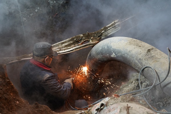 "找到啦!"隨著一聲驚呼,一條約20公分長的裂口,赫然出現(xiàn)在人們面前。雖然當時已經(jīng)是晚上8點多,室外的氣溫也在持續(xù)下降,為了盡快恢復供熱,大家沒有休息,馬不停蹄的開始了緊張的堵漏工作。經(jīng)過一夜的奮戰(zhàn),終于在23日早6點半結(jié)束搶修,開始注水。在停暖15個小時后,恢復正常供熱,確保了62萬平米內(nèi)的熱用戶家中溫度及時上升。