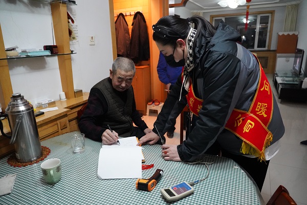 在社科院家屬樓3號(hào)樓1單元1樓東戶家中,該房屋戶型既是底層又是邊戶,工作人員利用專業(yè)的測(cè)溫設(shè)備測(cè)得用戶家中室溫為23℃。雖然室溫達(dá)標(biāo),但看到房主是一位上年紀(jì)的大娘,劉婷還是不放心,用手摸了摸用戶家中的暖氣,并用測(cè)溫槍對(duì)房間內(nèi)的所用暖氣片都進(jìn)行了測(cè)溫,測(cè)得暖氣片溫度平均都在45℃左右。"不用摸啦,也不用測(cè)了,別看我住的是一樓,但是可暖和啦,這個(gè)溫度我相當(dāng)滿意。"大娘說到。隨后,工作人員拿出"便民服務(wù)卡",叮囑大娘家中暖氣有任何問題,都可以撥打上面的電話聯(lián)系客服管家,隨叫隨到。在小區(qū)1號(hào)樓2單元一戶頂層用戶家中,是一對(duì)老夫妻。開門的老大娘看到我們工作人員凍得通紅的雙手,趕忙給我們到了熱水,"都喝點(diǎn)熱水,在大娘這歇歇腳,暖和暖和。"大娘說到。在問到對(duì)我們的服務(wù)滿不滿意時(shí),大爺激動(dòng)的拉著工作人員的手說:"滿意,滿意,可滿意了。雖然在前期有一點(diǎn)小誤會(huì),但是咱們工作人員一次次熱情地上門服務(wù),認(rèn)真負(fù)責(zé)地解決問題,我們之間的小誤會(huì)早就解開了。現(xiàn)在對(duì)咱們城發(fā)工作人員,除了感謝,更多的就是理解和體諒了。"臨走時(shí),大爺還叮囑我們夏天不忙的時(shí)候,常來(lái)家里做客。