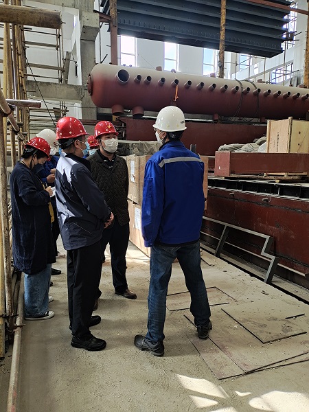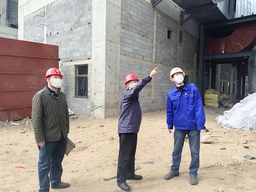 在三合村分公司200T燃煤熱水鍋爐等量替換工程現場,楊杰詳細聽取了工程的進展及復工復產工作準備情況,并針對目前存在的困難和問題,現場辦公研究解決方案。
