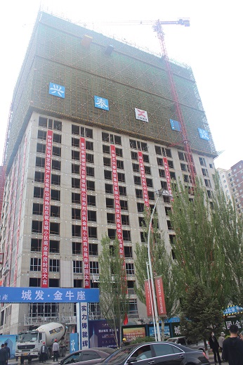 5月8日上午,在城發金牛座項目施工現場舉行了樓體封頂儀式。房地產公司黨支部書記郭依群、經理李錚、副經理韓雪峰及施工、監理、售樓單位相關人員出席儀式。