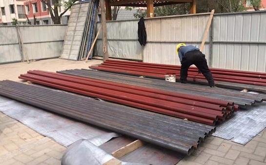 在如意小區A區,材料現場工人們正在粉刷防腐漆,7號樓正在拆除單元立管;在如意小區B區和C區,工人們正在拆除3號樓的單元立管,在現場看到拆下來的一段舊管,腐蝕非常嚴重,保溫層已完全沒有了,防腐漆分化了,一動就一片片掉下來了。