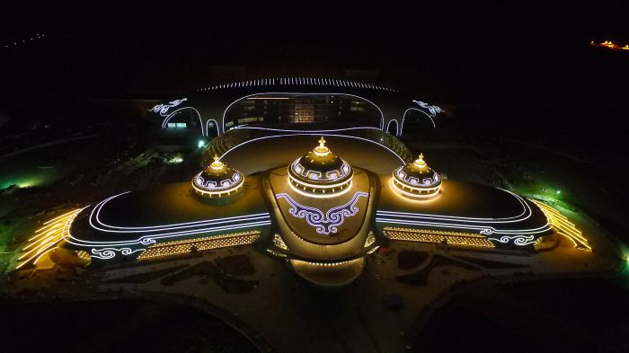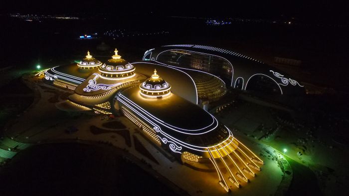 截止到2017年4月30日,內蒙古少數民族群眾文化體育運動中心項目完成投資共7.67億,目前各建筑物主體已完成,亮化工程完成80%,燈光效果初具模型。
