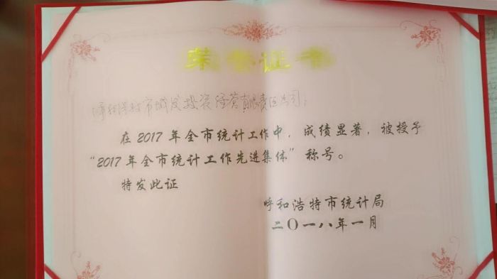 今年,市統計局對2017年全市統計工作先進集體進行了表彰,城發公司被授予