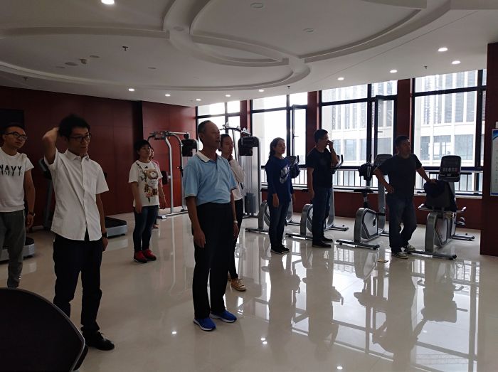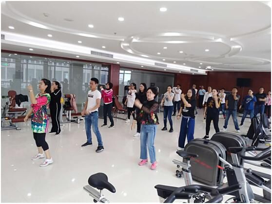 9月6日上午8時30分,激情洋溢的樂曲準時在城發集團19樓健身房響起,城發公司的20余名干部職工隨著鏗鏘有力的節拍,舒展身姿,精神抖擻地跳起了健身操。這是城發公司工會為備戰市工間操比賽作的一次賽前集訓。