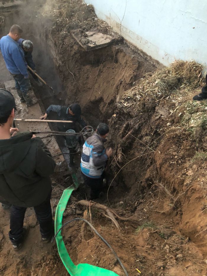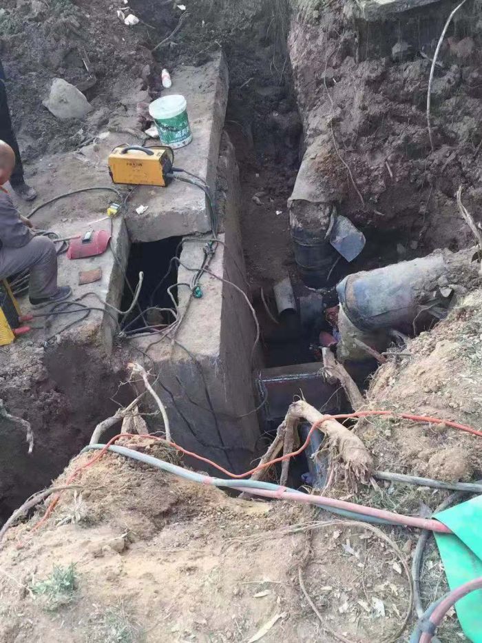 11月11日下午,中繼泵房專項(xiàng)高壓電閃落,1#、2#、3#循環(huán)泵因自動(dòng)保護(hù)驟停。出現(xiàn)異常后,調(diào)度立即通知京能電廠降頻,檢修車間立即組織人員進(jìn)行巡線,經(jīng)過15個(gè)小時(shí)不間斷排查,12日上午,發(fā)現(xiàn)如意舊網(wǎng)主線和1#站支線漏水嚴(yán)重。分公司檢修車間、運(yùn)營(yíng)二所和保駕護(hù)航單位迅速制定搶修方案組織搶修,經(jīng)理丁成斌、副經(jīng)理鄭紅飛親自到現(xiàn)場(chǎng)指導(dǎo)搶修工作。為準(zhǔn)確找到失水點(diǎn),搶修人員穿著隔熱服進(jìn)入管溝內(nèi)查找漏點(diǎn)。由于漏水點(diǎn)管線錯(cuò)綜復(fù)雜,施工難度非常大。接近管道時(shí),發(fā)現(xiàn)漏點(diǎn)位置靠近井壁且管道腐蝕嚴(yán)重,壁厚較薄,采取整理外層補(bǔ)焊的方式進(jìn)行修補(bǔ)。