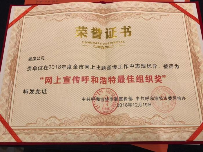 日,城發公司榮獲由市委宣傳部、市委網信辦評選的