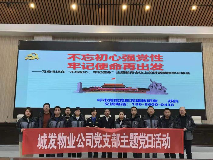 11月26日上午,城發物業公司全體黨員、入黨積極分子共計10人,由娜仁同志帶隊,到市廉政文化教育基地參加呼市住宅小區環境秩序管理局舉辦的“不忘初心、牢記使命”主題教育培訓班。市小區局黨支部副書記、副局長云梅同志主持。