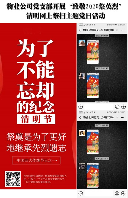 4月2日,城發物業公司黨支部組織開展“致敬2020祭英烈”清明網上祭掃主題黨日活動。