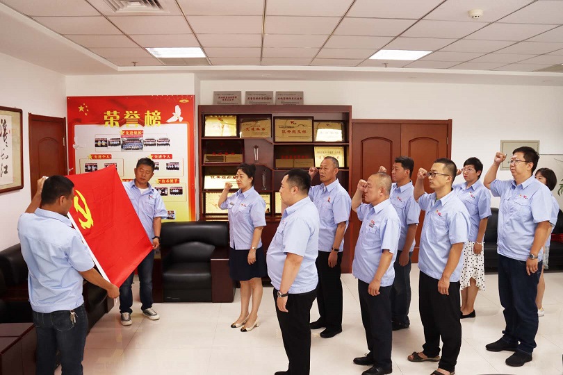 物業(yè)公司黨支部按照發(fā)展黨員的組織程序,吸收新鮮血液,充實了組織力量,今年按期轉(zhuǎn)正1名黨員,吸收了1名預(yù)備黨員。組織委員郝曉東同志為預(yù)備黨員史濤同志佩戴了黨徽,面對鮮紅的黨旗,在領(lǐng)誓人娜仁同志的逐句領(lǐng)讀下,史濤用慷慨激昂的語氣,莊嚴(yán)向黨旗宣誓,表達(dá)對黨的忠誠、為共產(chǎn)主義奮斗終身的決心,并表示,一定會珍惜共產(chǎn)黨員的光榮稱號,不負(fù)使命,立足崗位、踏實工作、謹(jǐn)守誓言、履行黨員義務(wù),為黨增光添彩!