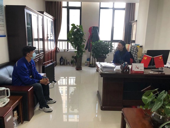 此次活動主要訪談接待公司困難職工,了解他們在工作、生活及家庭方面存在的困難,征求意見建議,力所能及的幫助解決實際問題。黨支部書記郭依群還接待了公司新入職的職工,和他們促膝而談,詳細介紹了公司的發展情況,鼓勵他們要發揚青年職工敢于爭先、吃苦耐勞的精神。同時郭依群同志還同積極入黨的同志進行了談心談話,了解其思想動態和工作情況,并要求他們要加強學習、提高思想認識和政治覺悟,時刻以共產黨員的標準要求自己,爭取早日入黨。