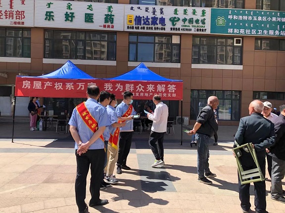 在祥和苑公租房小區社區服務中心,志愿者們向廣大群眾詳細的介紹了公租房購買條件和流程,以及辦理不動產權證等政策知識,并為購房群眾現場發放了辦理不動產權證的發票和網簽合同。同時大家還主動前往小區人流較多的北門,熱情的向廣大群眾發放了公司專門制作的公租房銷售和不動產權證宣傳圖冊,耐心的為群眾解答購買公租房和辦理產權政策的各項疑慮、困惑。