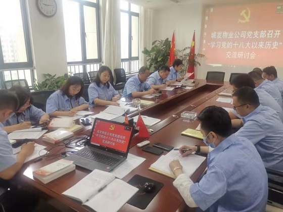 6月25日上午,城發物業公司黨支部組織全體黨員、干部、入黨積極分子在公司會議室召開“學習黨的十八大以來歷史”專題研討會,黨支部書記娜仁以“學史力行 走好新時代長征路”為主題講黨課。城發公司黨委副書記張永參加會議。