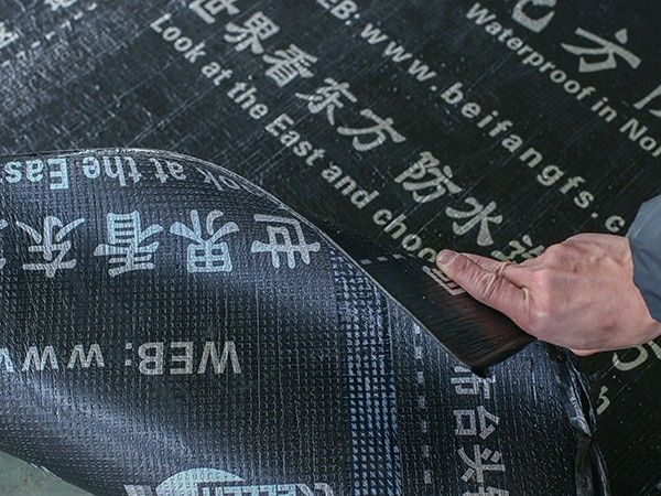 帶頁巖片卷材短邊搭接時要去掉頁巖層,方法是用火焰加熱后用抹子刮掉頁巖部分。也可以采用對接,方法是在接縫處下面墊300mm卷材條,卷材橫向對接,接縫處用密封材料處理。